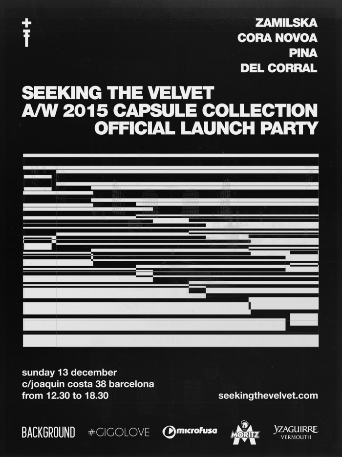 13th of December Seeking The Velvet reveals the new collection AW15 Capsule Collection, designed by Cora Novoa on an exclusive party in Barcelona. Seeking The Velvet is the Spanish artist Cora Novoa´s new art, music and design project all together.
